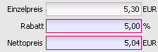 Automatische Rechenfelder werden mit einem blauen Hintergrund dargestellt. Dies Versinnbildlicht die Zusammengehörigkeit der Felder. Zugleich wird damit angezeigt, dass beim Verlassen eines dieser Felder eine entsprechende Rechenoperation durchgeführt wird. Je nach Hintergrund der Berechnung kann es vorkommen, dass diese Berechnung auch längere Rechenzeit beansprucht.