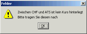 Der Grund für die Meldung ist, dass die Zuordnung zwischen einem der Mandantenkurse zu den anderen Währungen fehlt.