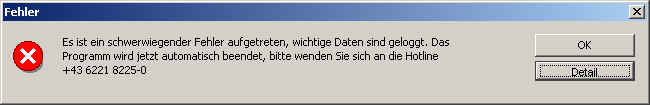 Sollte wider erwarten eine Fehlermeldung dieser Art auftreten, so klären Sie bitte zuerst mit Ihrem Administrator die Fehlermeldung ab.