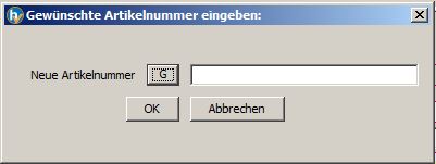 Um zum Beispiel nach Erteilung des Auftrags an Ihren Lieferanten Handeingaben in Artikel umzuwandeln, verwenden Sie diesen Menüpunkt. Nach Klick auf den Menüpunkt, erfolgt eine Abfrage, welche Artikelnummer Sie für den Artikel verwenden wollen, hier können Sie auch einfach eine neue Artikelnummer generieren.