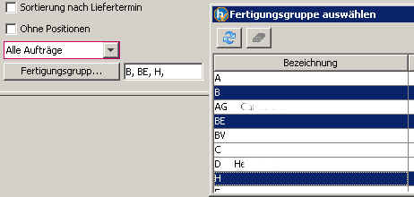 Bedienen Sie dazu das Auswahlfenster der Fertigungsgruppen wie folgt: