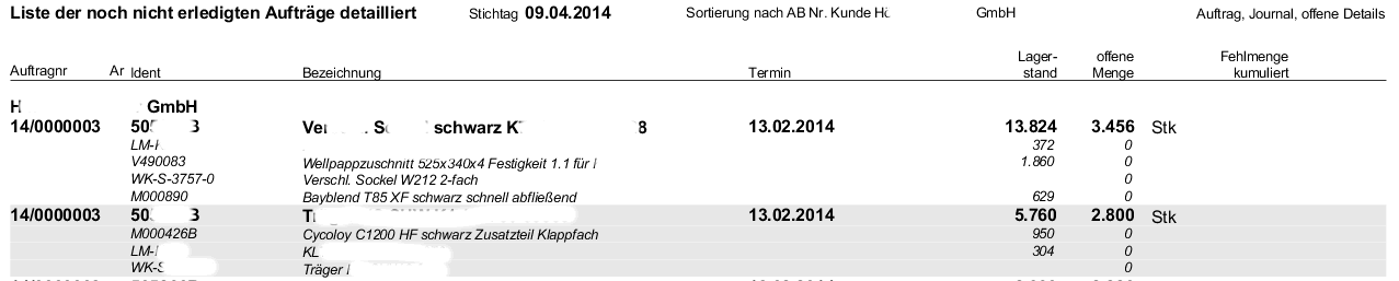 c.) Die gesamte AB darf zum Stichtag noch nicht erledigt sein. D.h. der Stichtag ist vor dem Erledigungsdatum, also das Erledigungsdatum ist NACH dem Stichtag. Eine Berücksichtigung der Erledigungszeitpunkte der einzelnen Positionen ist derzeit datentechnisch nicht vorgesehen.