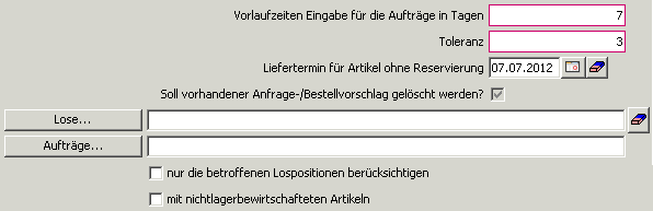 Für die Vorbelegung siehe bitte Parameter: TOLERANZFRIST_BESTELLVORSCHLAG