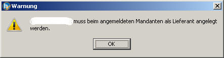 Was bedeutet die Meldung: (… ) [M]uss beim angemeldeten Mandanten als Lieferant angelegt werden?