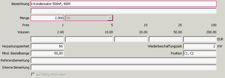 Die Einkaufsanfragestückliste soll demselben Zweck wie die Angebotsstückliste dienen: Durch die Eingabe der einzukaufenden Positionen können Sie einen Verkaufspreis kalkulieren.
