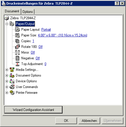 Bei Verwendung von dedizierten Etikettendruckern, stellen Sie unbedingt in den Druckereigenschaften des Etikettendruckers das eingelegte Etikett ein.