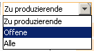 Offene: Es werden nur die offenen Lose angezeigt. Offene Lose sind alle Lose im Status angelegt, Ausgegeben, in Produktion, Teilerledigt
