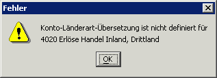 Die Meldung “Konto-Länderart-Übersetzung fehlt” bedeutet, dass für das Erlöskonto keine Länderartübersetzung definiert ist. Wählen Sie das entsprechende Sachkonto aus (in unserem Fall 4020) und wählen Sie den oberen Reiter Konto-Länderart. Nun definieren Sie mit Neu die jeweiligen Kontoübersetzungen für die unterschiedlichen Länder.