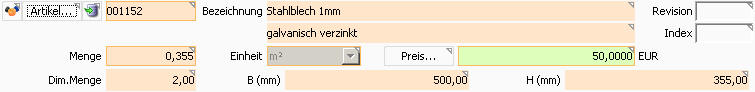 Dies ist ausschließlich eine Rechenhilfe, die beim Feldwechsel aus der Dimensionenerfassung die Verkaufsmenge aktualisiert. Umgekehrt wird eine Änderung der Verkaufsmenge nicht in die Abmessungen übertragen.