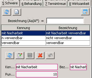 Definieren Sie hier, welche Fehler Sie als Ursache für eine Reklamation angeben können wollen.Hier geht es darum, dass Fehler und Maßnahmen katalogisiert werden. Nur durch die Katalogisierung können Aussagen darüber gemacht werden, wie sich Ihre Qualität entwickelt. In welchen Bereichen Handlungsbedarf besteht.Aus der Praxis hat sich gezeigt, dass es unmöglich ist, auf Null Fehler zu kommen. Aber die Fehler um die Hälfte, also 50% zu reduzieren gelingt immer wieder.Diese Fehler werden auch am Zeiterfassungsterminal bei der Angabe von Schlecht-Stück als Angabe zur Verfügunggestellt.