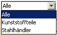 In der Liefergruppenauswahl im Anfragekopf werden nur diejenigen Liefergruppen angezeigt, die auch Zuordnungen zu Lieferanten haben. Sollten Sie daher keine Liefergruppe bzw. die gewünschte Liefergruppe nicht in der Anfrage vorfinden, so ist für die jeweilige Liefergruppe noch kein einziger Lieferant zugeordnet.