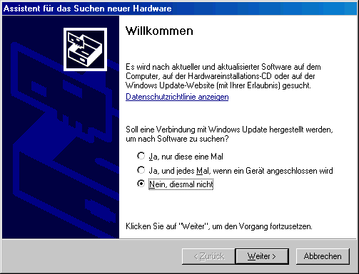 Sind die Stifte ganz neu, bzw. sehr tief entleert, so kann es 1-2Minuten dauern, bis der Hardware-Installationsassisten erscheint.