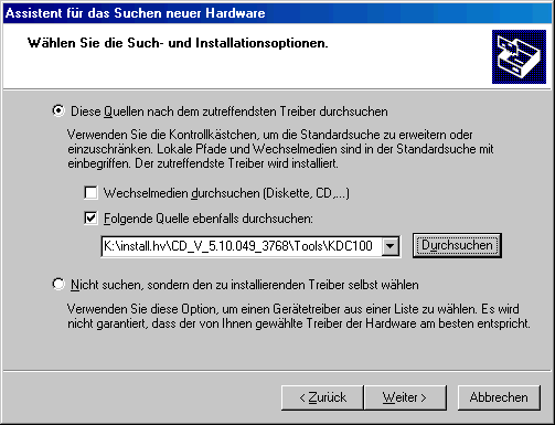 Die erforderliche Datei finden Sie auf Ihrer Helium V Installations-CD im Verzeichnis Tools\KDC100