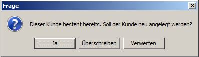 Bei "Überschreiben" wird der bestehende Kunde mit den neu eingegebenen Daten überschrieben.