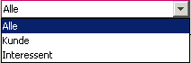 Neben den Direktfiltern auf die Kundennamen, steht auch eine Filterung auf “nur Kunden” oder “nur Interessenten zur Verfügung”. Wählen Sie dazu aus der Combobox die gewünschte Einstellung aus.