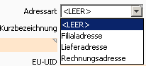 Dieses Feld dient der Erfassung des Vorschlagswertes für die “ReverseChargeArt” für neue Rechnungen. D. h. mit dieser ReverseCharge-Einstellung wird eine neue Rechnung dieses Kunden angelegt. Die tatsächliche Verwendung wird in der Rechnung definiert und kann jederzeit, in Abhängigkeit des Status der Rechnung geändert werden.