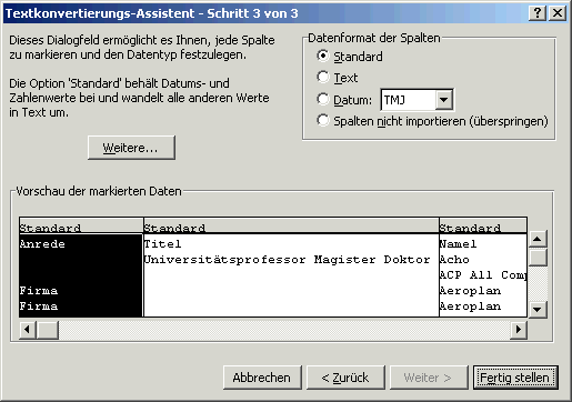 Auftragsadresse verwenden, Statistikadresse verwenden?