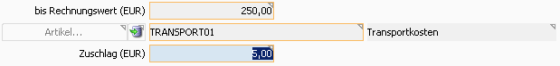 Definieren Sie bis zu welchem Rechnungswert automatisch welche zusätzlichen Kosten verrechnet werden. So bedeutet obige Definition, dass ab 250,- € der nächst höhere oder kein Mindermengenzuschlag mehr verrechnet wird.