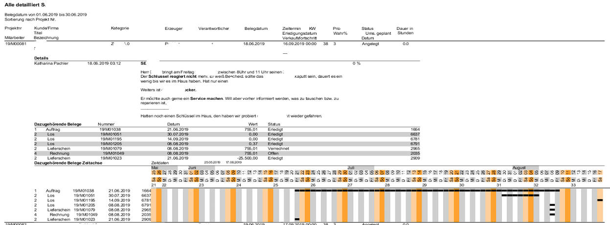 Mit dem Journal Aktivitätsübersicht erhalten Sie eine Übersicht im PDF-Format über alle Detailänderungen an Ihren Projekten. Sie können die Auswertung auf einen Zeitbereich einschränken. Sie erhalten eine Auswertung über Telefonate, Arbeiten und Aktionen, die in dem gewählten Zeitbereich durchgeführt wurden.