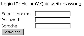 Sie starten die Quickzeiterfassung über http://HELIUMV_SERVER:8080/ze/ze?cmd=quickze, wobei Sie HELIUMV_SERVER durch den Namen oder die IP-Adresse Ihres HELIUM 5 Servers ersetzen.