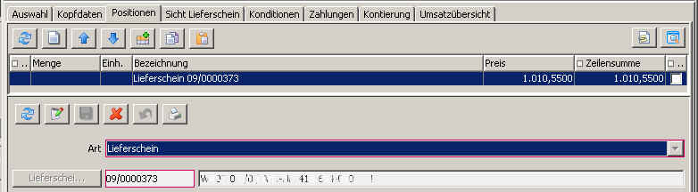 Rechnungsposition Lieferschein vor Storno