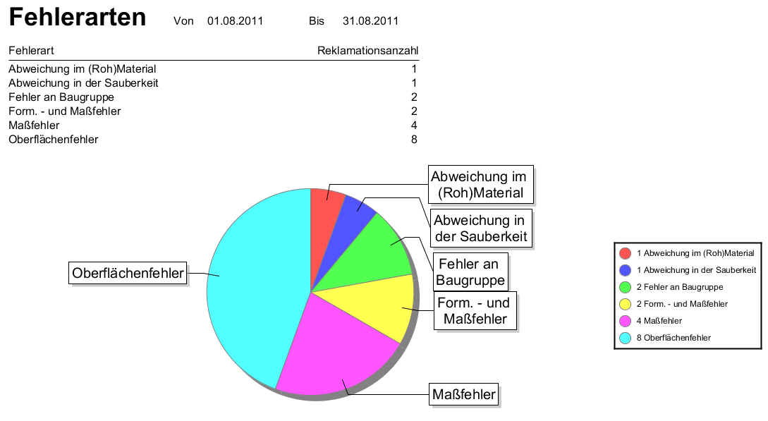 Mit dieser Auswertung haben Sie eine gute Übersicht über den aktuellen Stand der Fehler Ihrer Produktion.
