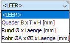 Wählen Sie die Form und geben Sie die zur Form passenden Abmessungen an, damit das Gewicht und der geschätzte Einkaufspreis berechnet werden können. Alternativ kann direkt das Gewicht angegeben werden. Auf der Grundlage des Gewichts wird der Preis berechnet. Als weitere Alternative kann der geschätzte Preis der Materialposition eingegeben werden.