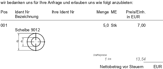 Wenn mehrere Staffeln vorhanden sind, müssen Sie die Staffel auswählen, die Sie in Ihr Angebot übernehmen möchten. Im Angebot werden alle Mengenstaffeln angeführt, wodurch Ihr Kunde eine gute Preisübersicht bekommt.