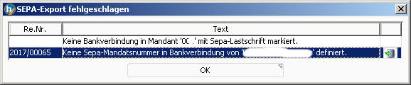 Um den Lastschriftexport durchführen zu können, pflegen Sie bitte die Daten nach und klicken Sie dann erneut auf SEPA Lastschrift exportieren.