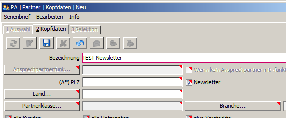 Nun wechseln Sie in den Reiter Serienbrief im Modul Partner und erstellen einen neuen Serienbrief. Setzen Sie auch hier den Haken für Newsletter.