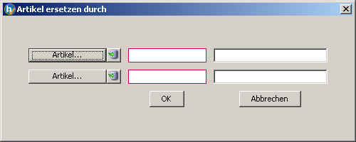Im Menüpunkt Bearbeiten, "Artikel ersetzen durch" kann in allen Stücklisten ein Artikel durch einen anderen ausgetauscht werden. Es werden dabei auch die Arbeitspläne durchsucht. Die Ersatztypen der Stücklistenposition werden nicht geändert. Der obere Artikel ist der alte, zu ersetzende Artikel. Der untere Artikel ist der neue Artikel, der in allen Stücklisten eingefügt werden soll.