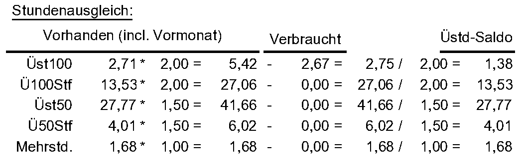 Dieser Stundenausgleich wird, falls erforderlich, auf der Monatsabrechnung angedruckt.