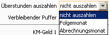 Ist nun "Überstunden monatl. auszahlen." angehakt, so werden alle Überstunden, inklusive der Stunden des Vormonates, zum 1. des nächsten Monates ausbezahlt, solange "Verbleibender Puffer" nicht unterschritten wird. Es werden die teuersten Überstunden zuerst abgebaut.