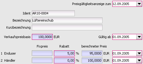 Beispiel gültig für die Verkaufspreisbasis und damit für alle darauf basierenden Preise.