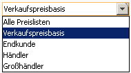 Verkaufspreisdefinition anhand von Preislisten