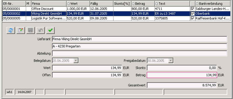 Alle anderen Eingangsrechnungen werden als zu bezahlen vorgeschlagen. Das Bezugsdatum für die Berechnung der Fälligkeit der Eingangsrechnung ist das Freigabedatum der Eingangsrechnung. Dazu wird die Zahlungsfrist anhand des Zahlungszieles mit oder ohne Skonto hinzugerechnet.
