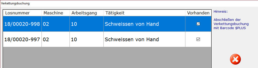 Mit Verketten wird die gemeinsame Arbeit auf verschiedenen Arbeitsgängen von unterschiedlichen oder gleichen Losen gestartet.