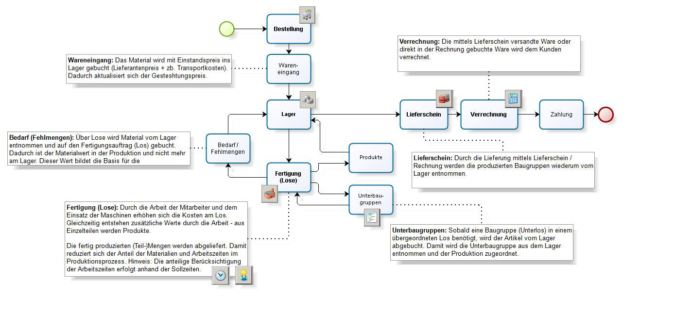 Hier finden Sie eine Auflistung der beschriebenen Abläufe, ausgehend von einem sehr groben Durchlauf durch den in HELIUM V abgebildeten Unternehmenskreislauf.